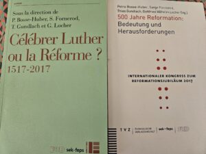 Par ailleurs, j’ai assuré la publication des actes d’un congrès préparatoire sur les enjeux et les limites de la commémoration des 500 ans de la Réforme de 2017. « Célébrer Luther ou la Réforme? «  a été publié en trois langues chez Labor et Fides, TVZ et COE – WCC en 2014-2015. Ils sont disponibles en bibliothèque.